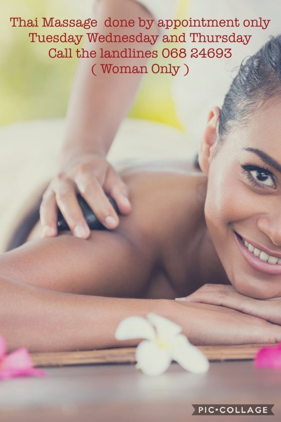 Thai Massage its Available for appointment only Tuesday, Wednesday and Thursday . Call 068 24693 (Woman Only) Posted on 14 August 2019 by Sunny's Hair & Beauty Ltd Delen: Share on X (Opens in new window) X Share on Facebook (Opens in new window) Facebook Like Loading...