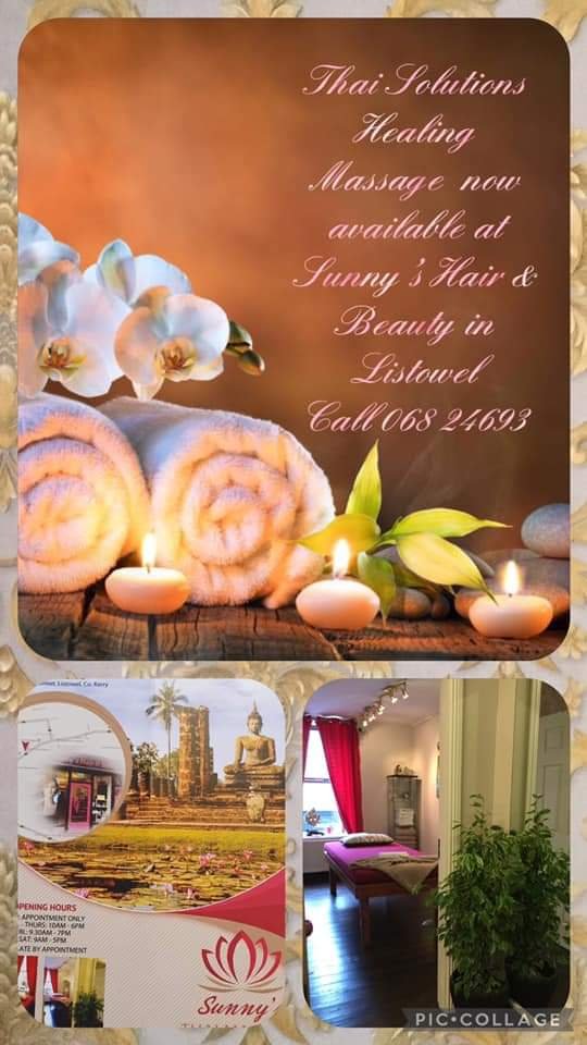 Thai solutions healing massage now Available at Sunny’s Hair and Beauty Listowel Call 068 24693
